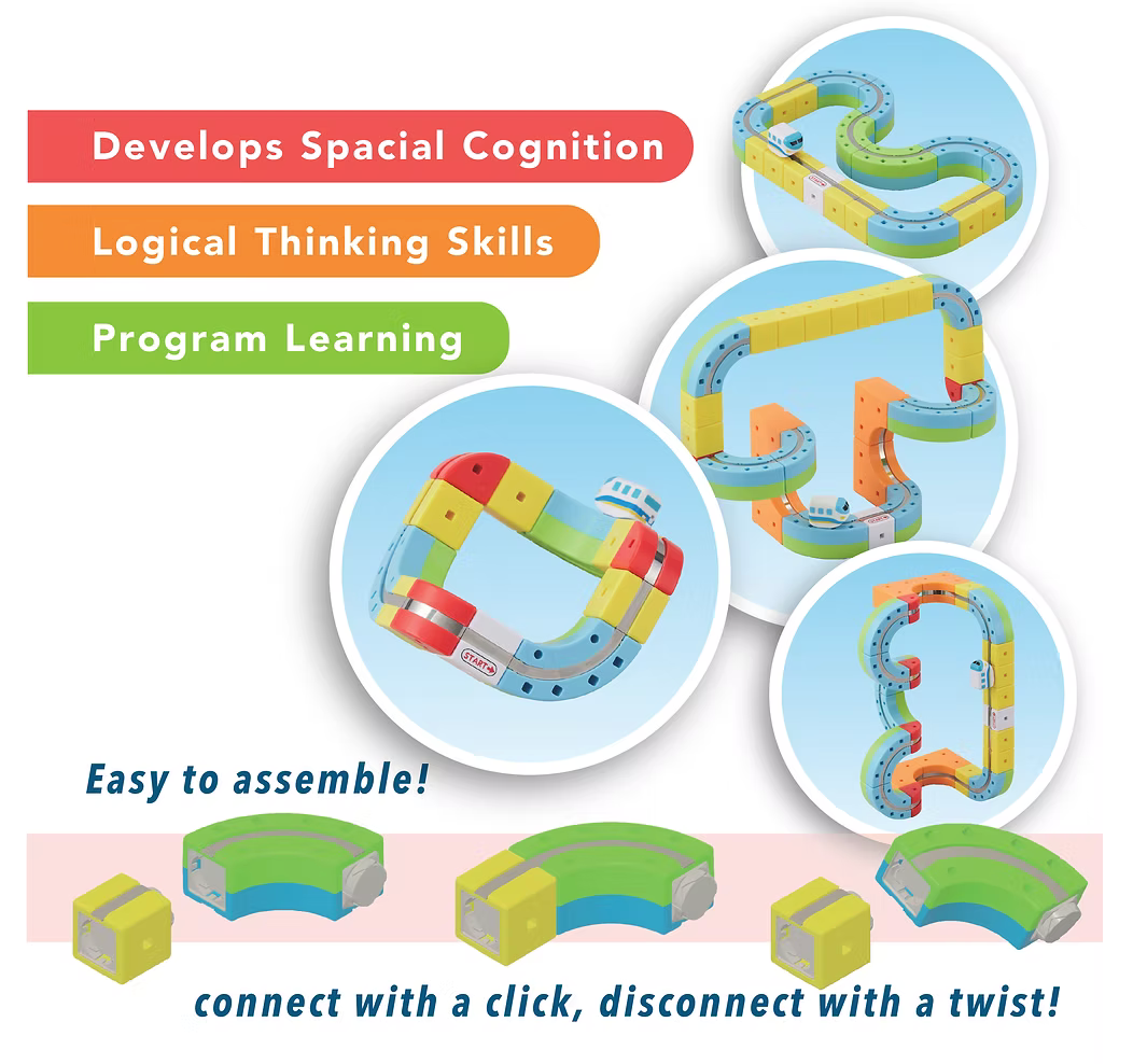 With a simple click, the magnetic blocks snap together, and with a quick twist they disconnect, creating a smooth and customizable monorail system. The included mini train glides effortlessly up, down, and upside down along the tracks, powered by imagination and magnetic force, ensuring hours of fun!